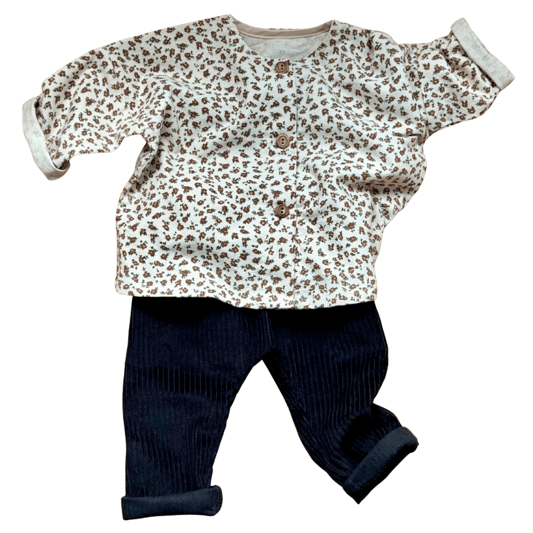 Blouse bébé beige motif fleurs – Made in France | Moomie