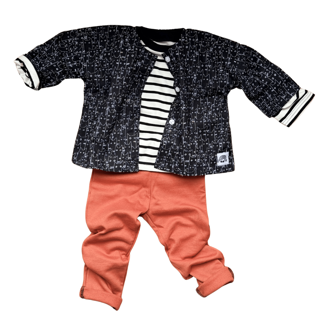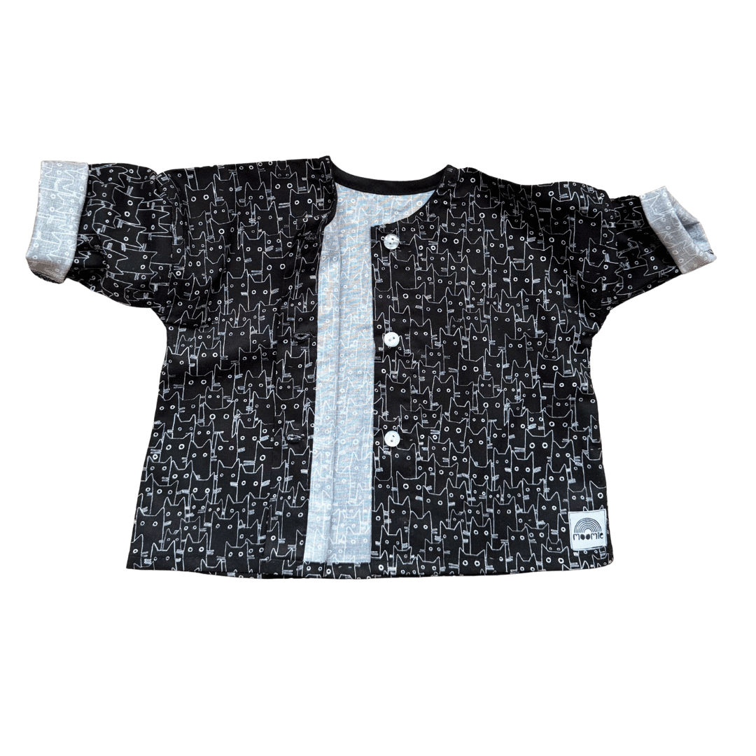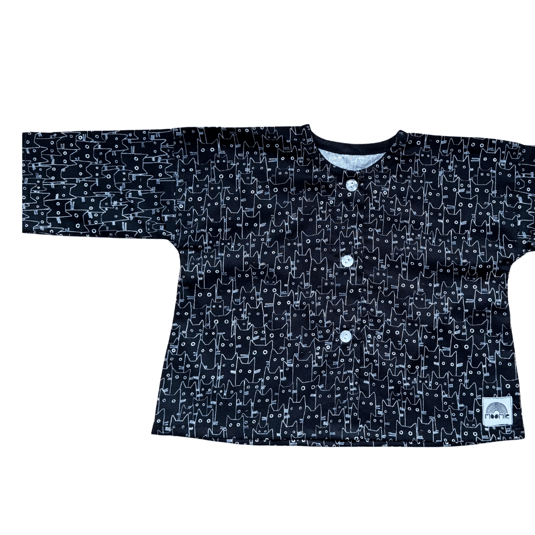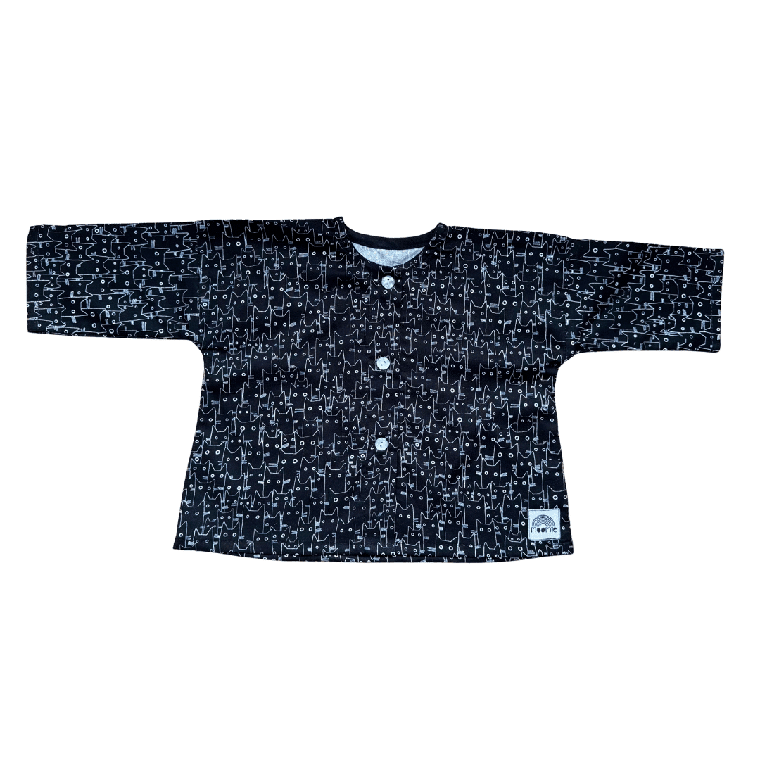 Blouse bébé noire et blanche motif chats – Made in France | Moomie