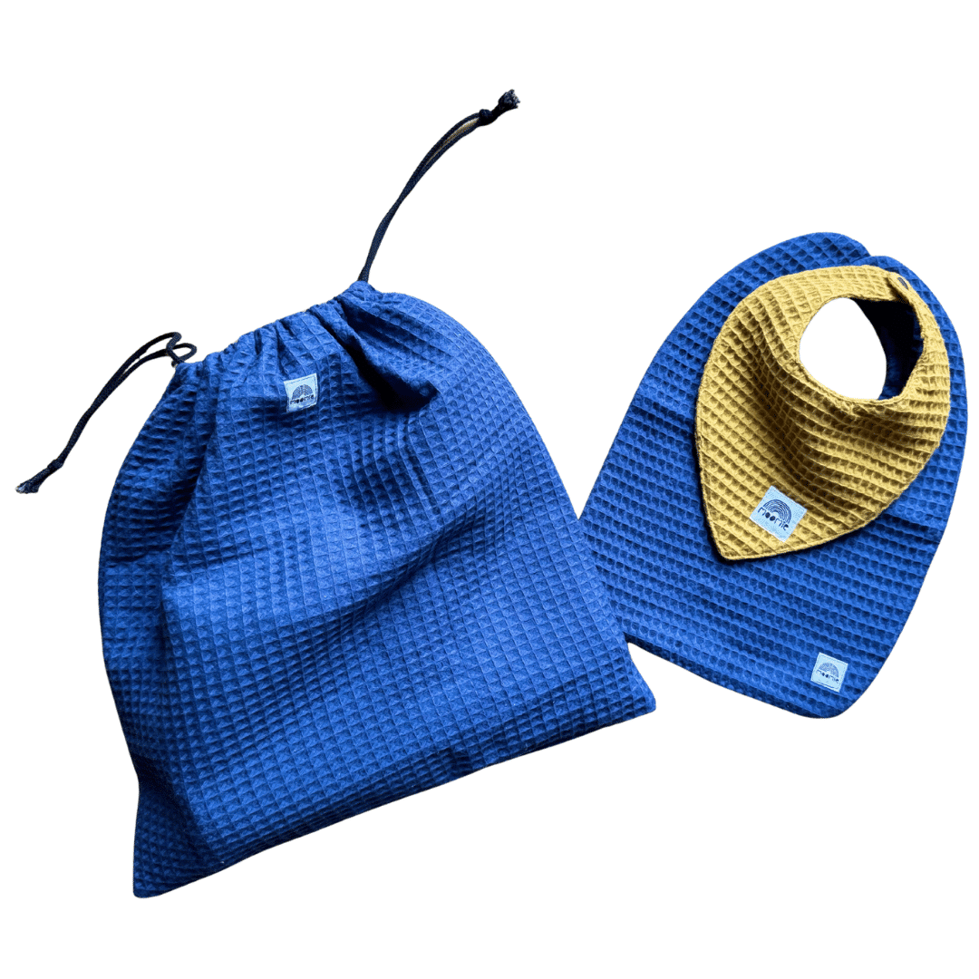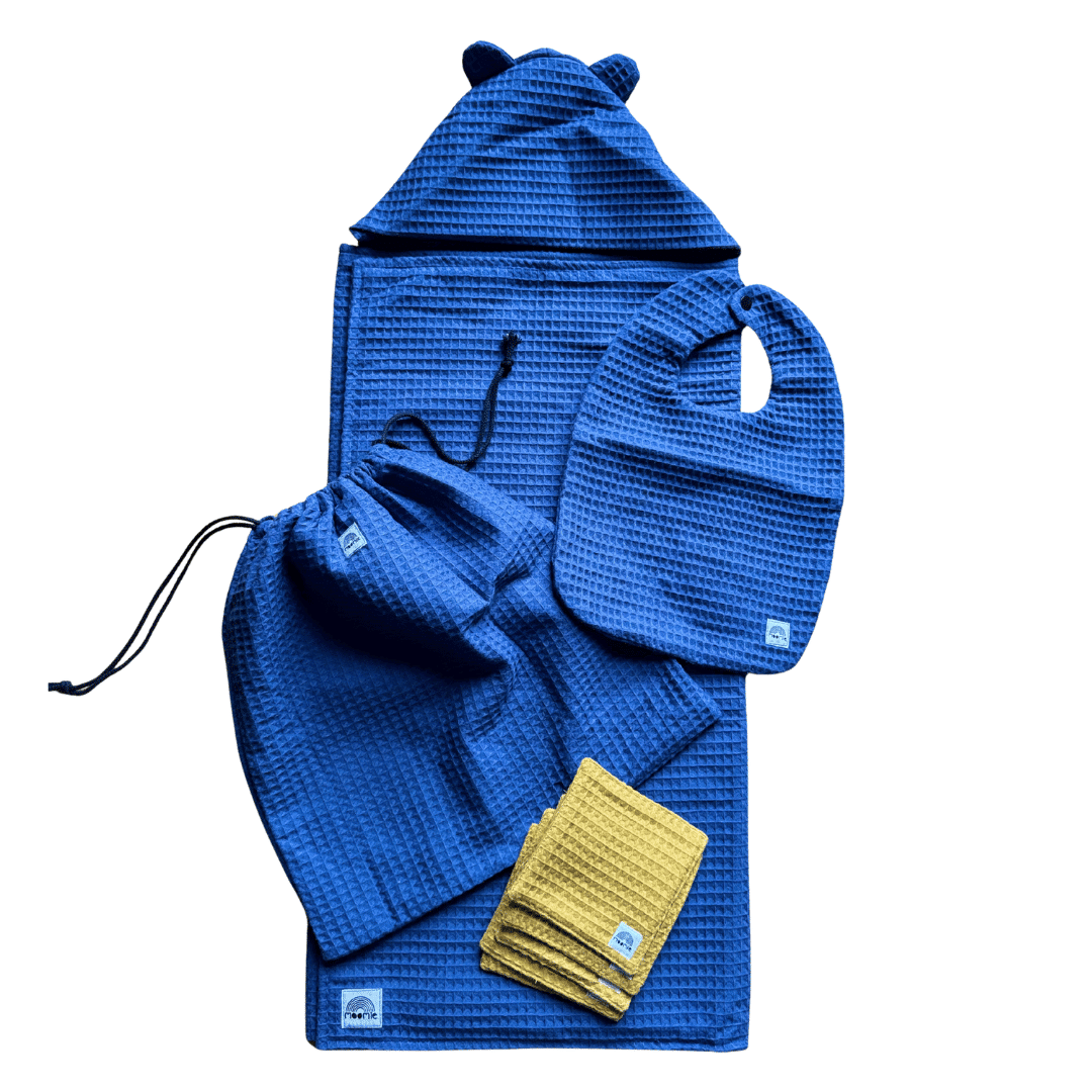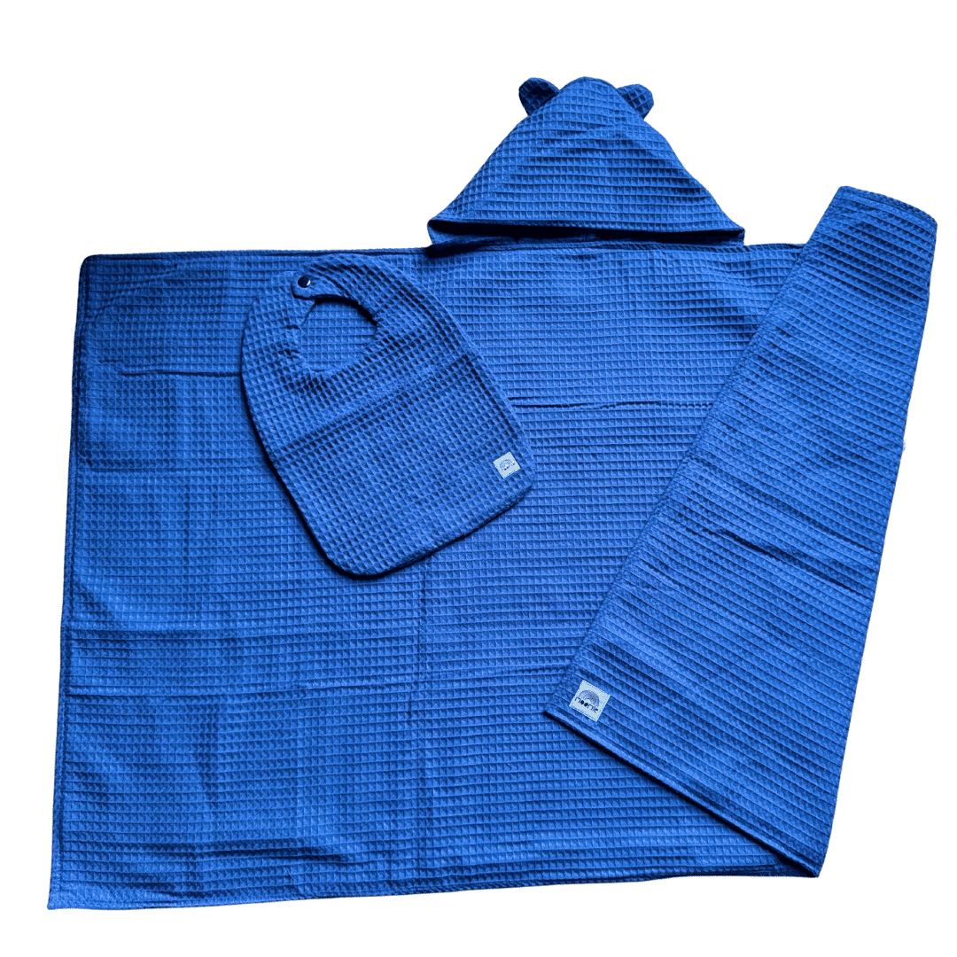 Cape de bain bébé en nid d’abeille bleu indigo – Made in France | Moomie