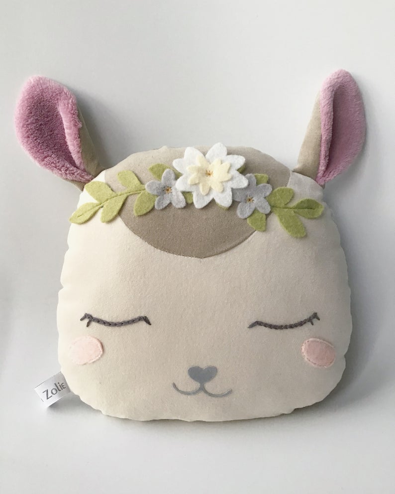 Vous cherchez une idée de cadeau originale ? Vous êtes au bon endroit ! Ce coussin sera parfait dans la chambre d’un bébé ou d’un enfant pour parfaire la déco. Fabrication française Coussin décoratif en forme de tête de faon Velours ras très doux, les yeux sont brodés à la main. Le museau est en velours. La couronne de fleurs est en feutre de laine. Rembourrage 100% Polyester Antiacarien Lavage à la main à 30° Chaque produit est unique. Dimensions : environ L 22 x H 24 cm (avec oreilles) Ceci n’est pas jouet, ni un doudou. Sophie, la créatrice de la marque Moomie, a déniché pour vous ces jolis coussins de la marque Caro & Zolie. Une collab’ entre ces 2 créatrices est à l’étude 😉