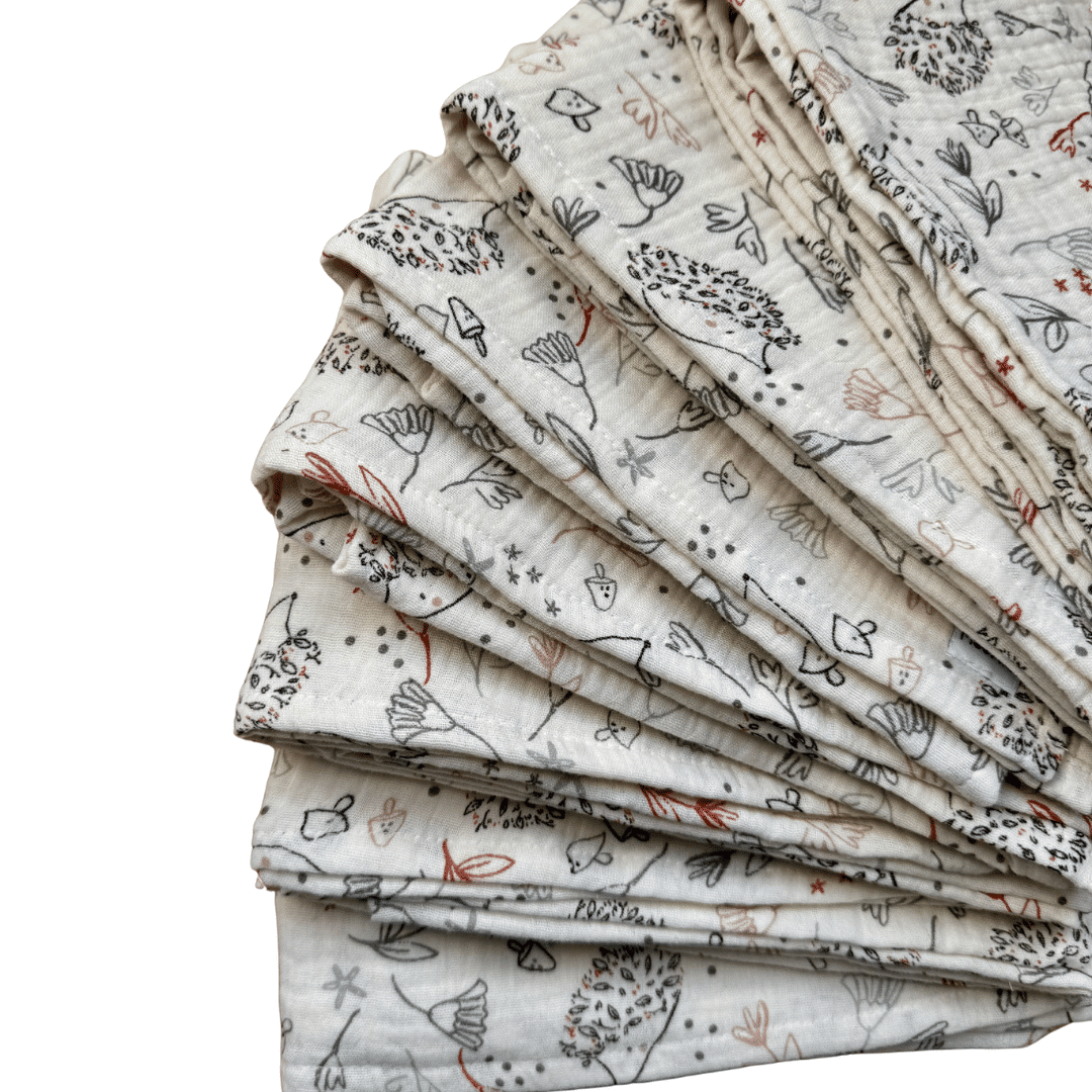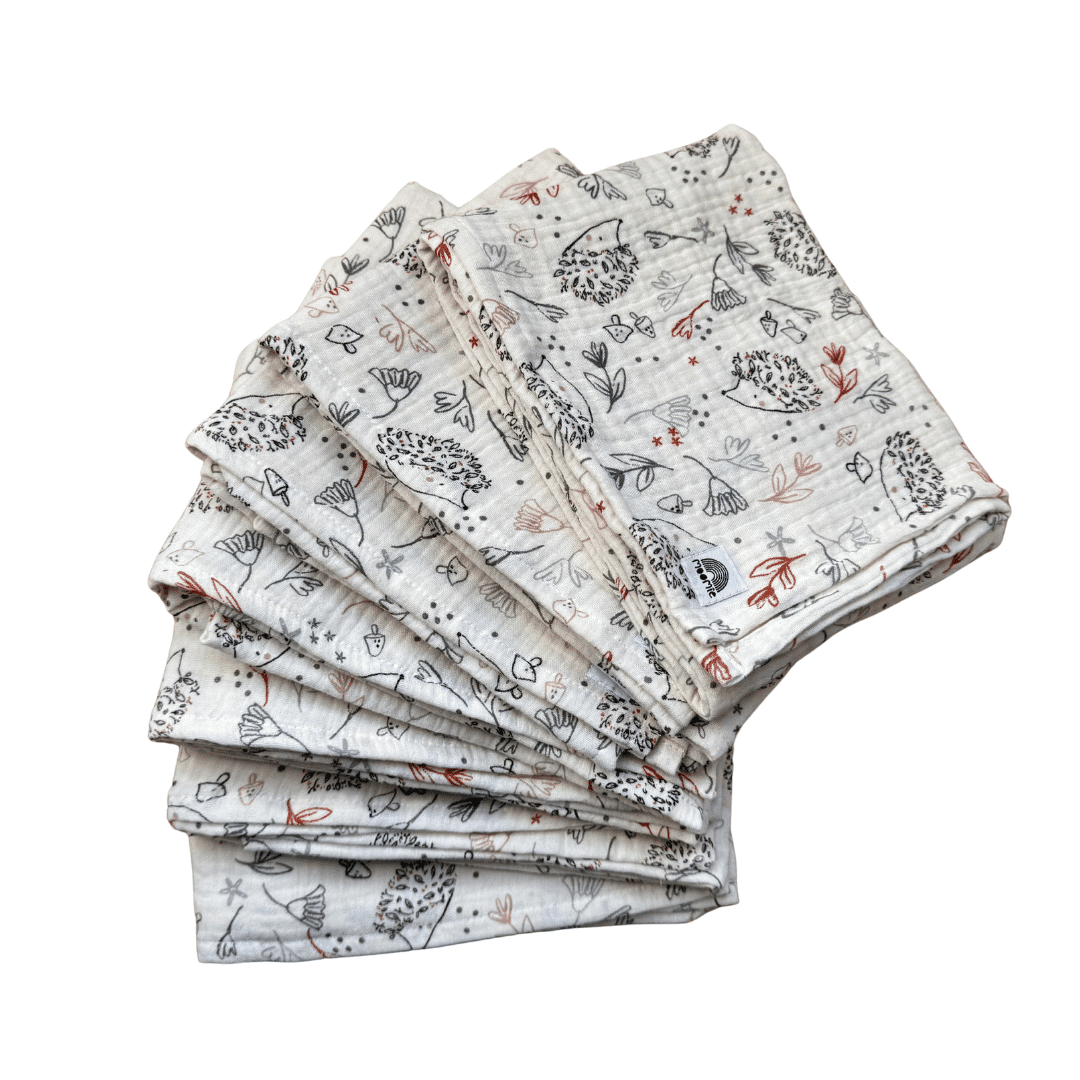 Avec son motif hérissons sur fond crème, ce lange apporte une touche douce et poétique à l’univers de bébé.