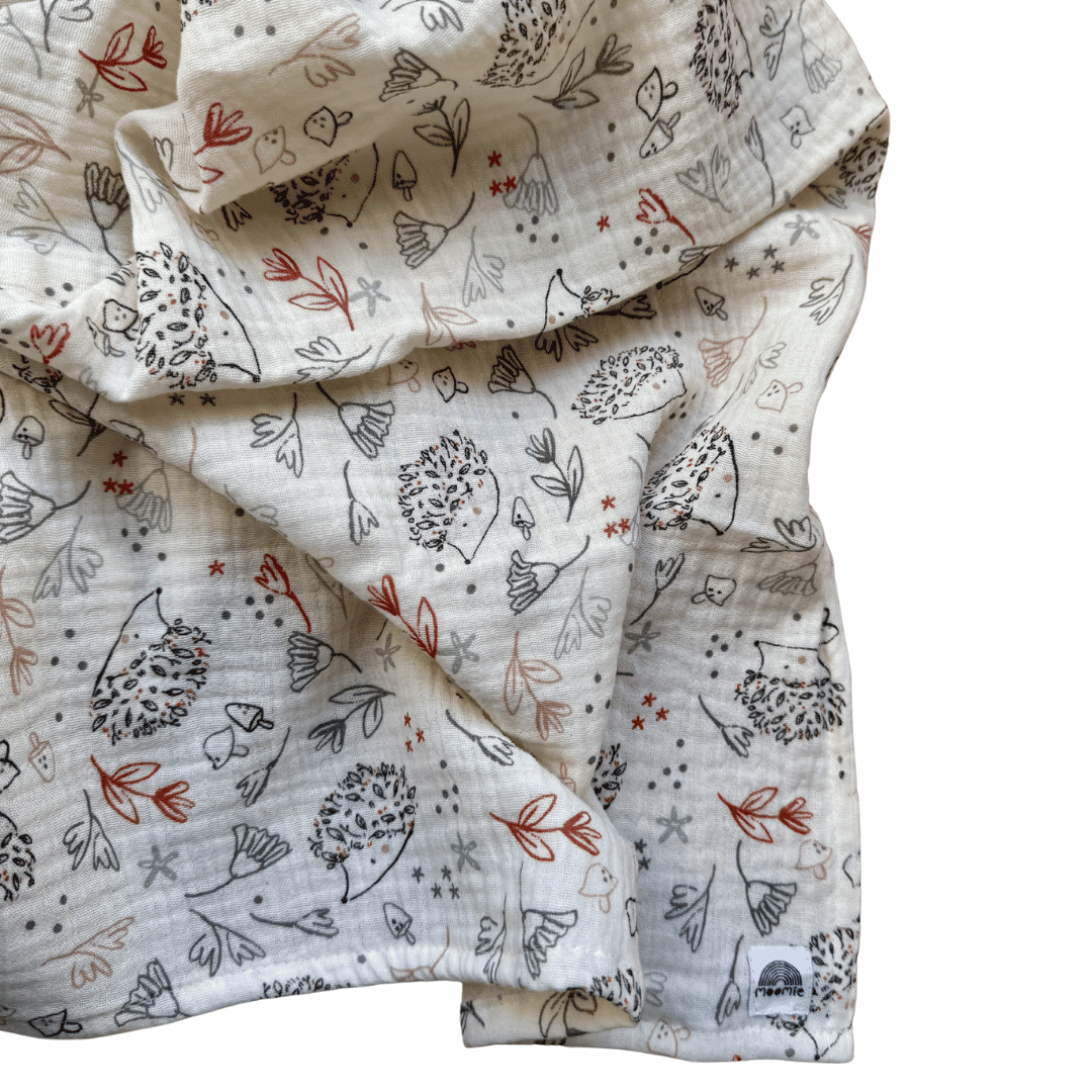 Craquez pour ce lange bébé en coton aux motifs hérissons, à la fois doux, pratique et multifonction.