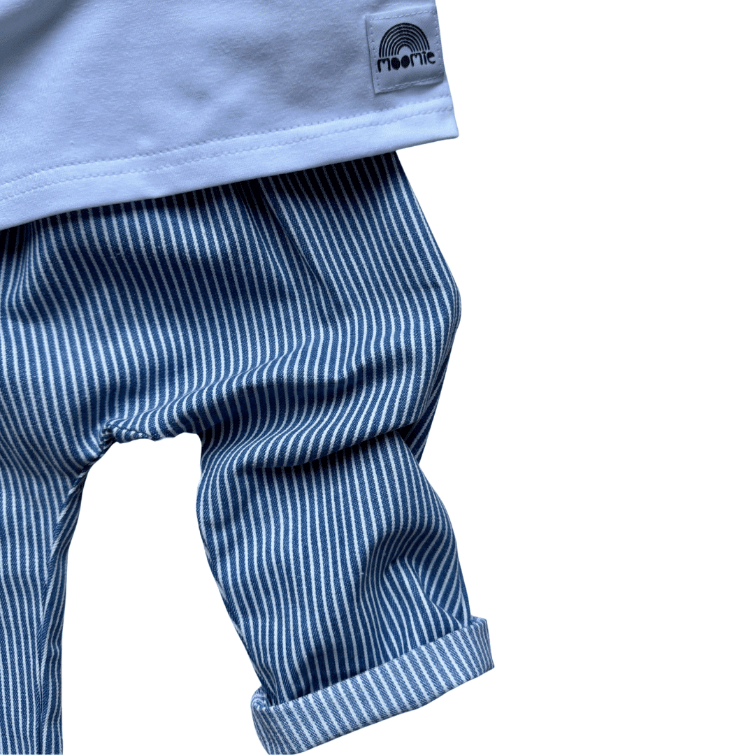 Pantalon bébé rayé bleu et blanc – coton Made in France | Moomie