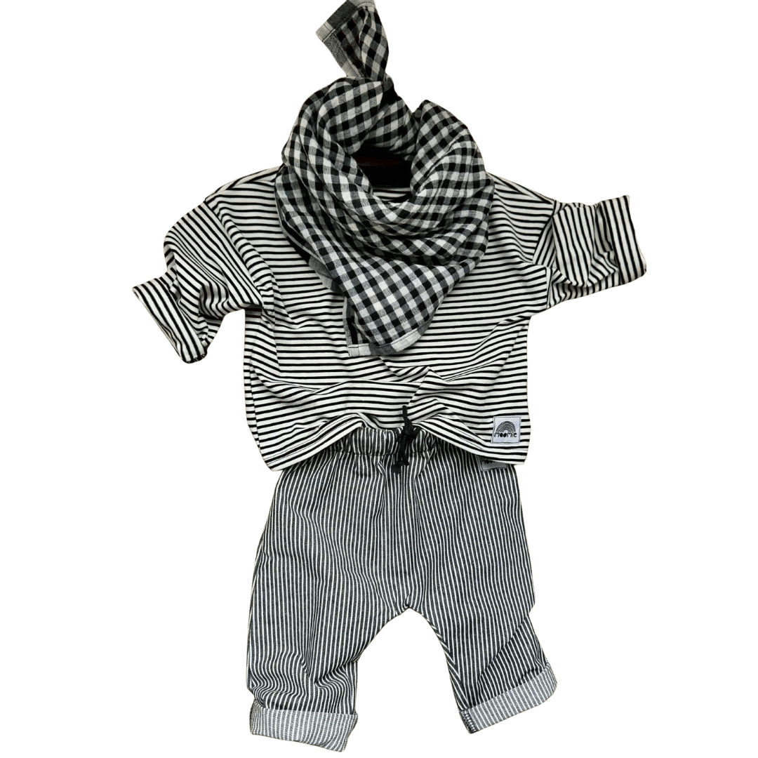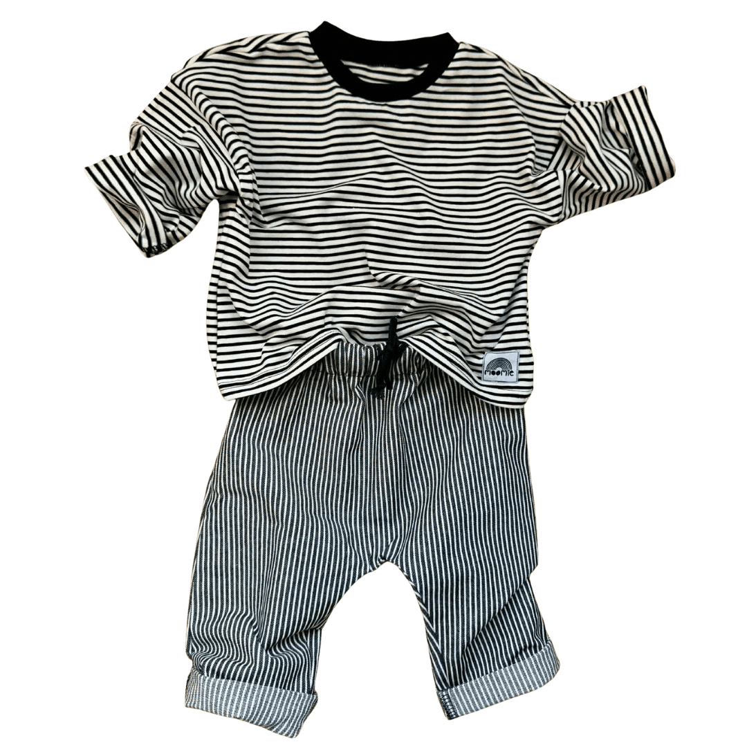 T-shirt bébé manches longues rayé crème et noir – Made in France